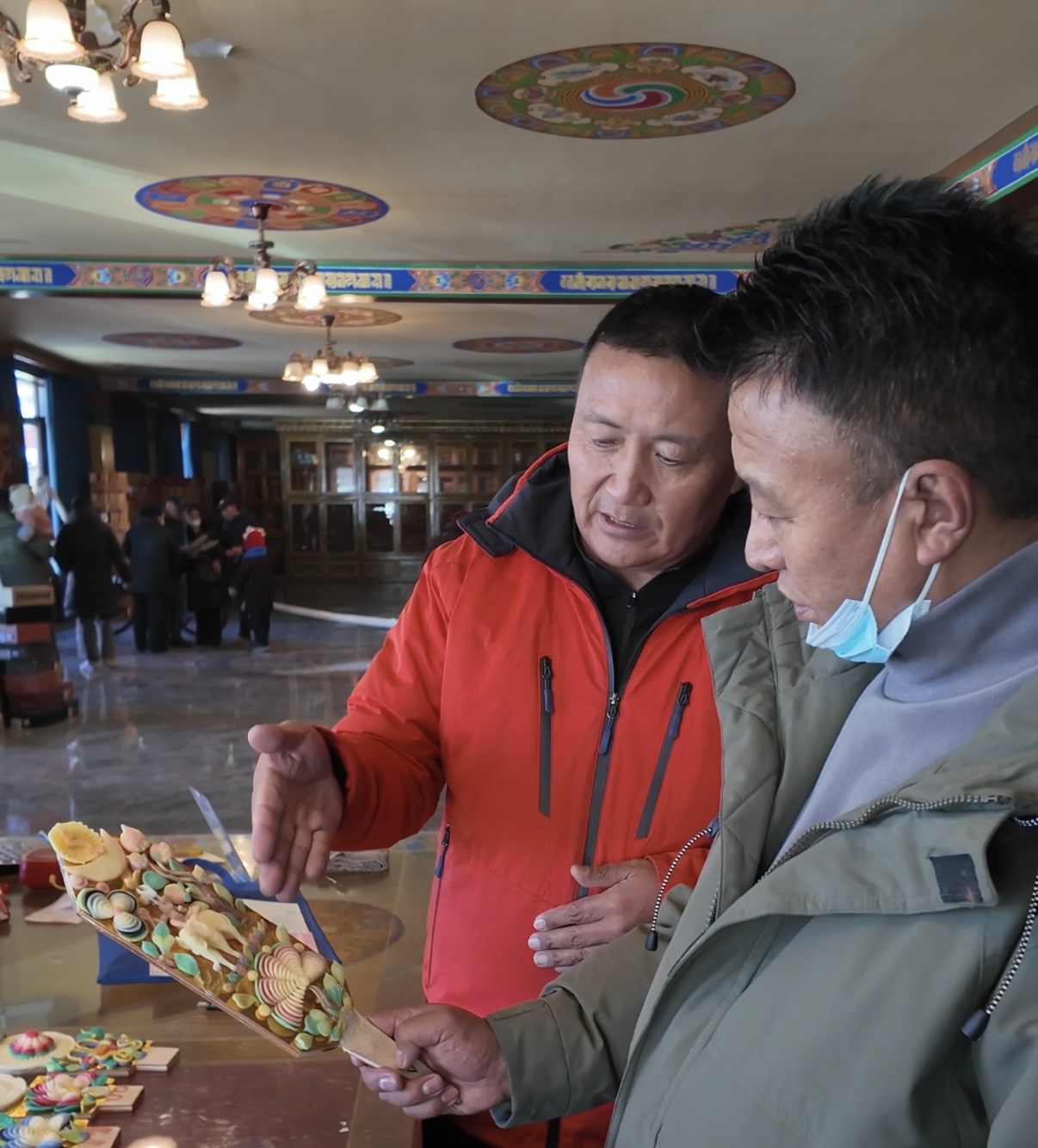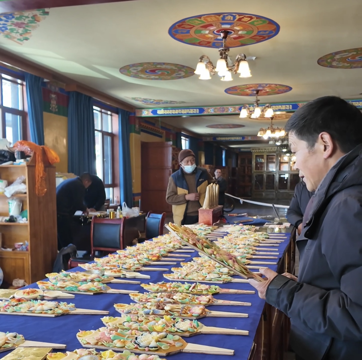 “哪種圖案寓意更好?”“‘八吉祥徽’和‘和睦四瑞’能搭配嗎?”問題接連不斷,倫珠忙得幾乎腳不沾地。他介紹,合作社于2025年11月成立,匯集了30多位手藝精湛的老師傅。為應(yīng)對新年需求,大家提前一個月便開始制作,沒想到開售僅3天,1500多對酥油花便已售出,備貨幾乎告罄。