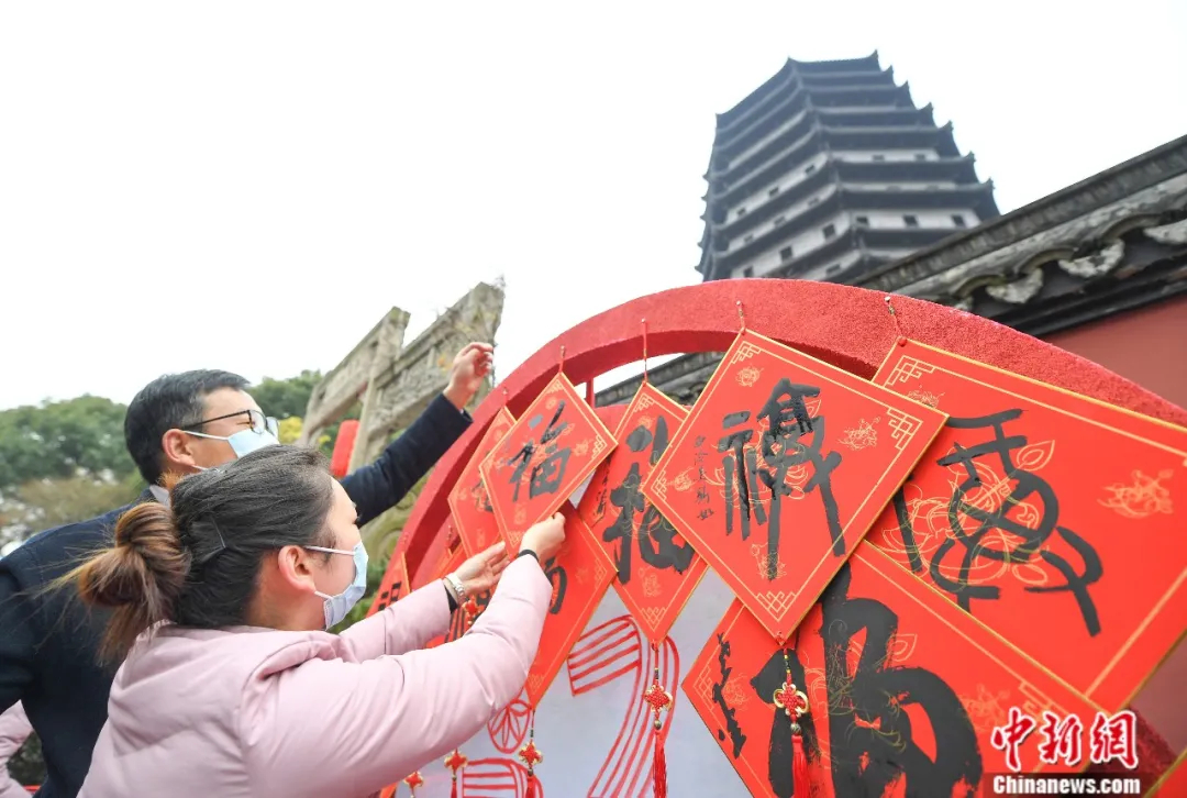 2026年1月18日,重大歷史題材電視劇《太平年》全球啟航發(fā)布會(huì)在浙江杭州錢(qián)王祠內(nèi)舉行。圖為游客在錢(qián)王祠外拍照留念。中新社記者 曹丹 攝