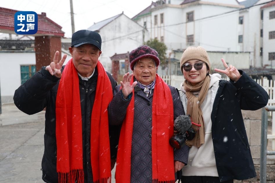 飄雪的冬日,陳真又一次如約來到上海金山嘴漁村,給她熟悉的“老朋友們”拍照。幾對相守幾十年的老夫妻舉著紅彤彤的大福字,圍著耀眼的大紅圍巾,笑聲朗朗?!芭c雪共白頭”的浪漫,陳真拍了一上午,也跟著老人們笑了一上午。