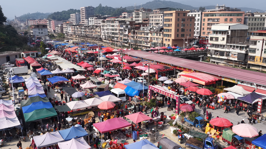 一些南方地區(qū)稱村鎮(zhèn)市集為“圩”。東田鎮(zhèn)“趕圩”的歷史悠久,至今已延續(xù)400多年。一位攤主告訴記者,“農(nóng)歷每月逢四逢九的日子便是東田鎮(zhèn)的趕圩日。年關(guān)前的集日人尤其多,大家都在熱熱鬧鬧地囤年貨?!?/p>