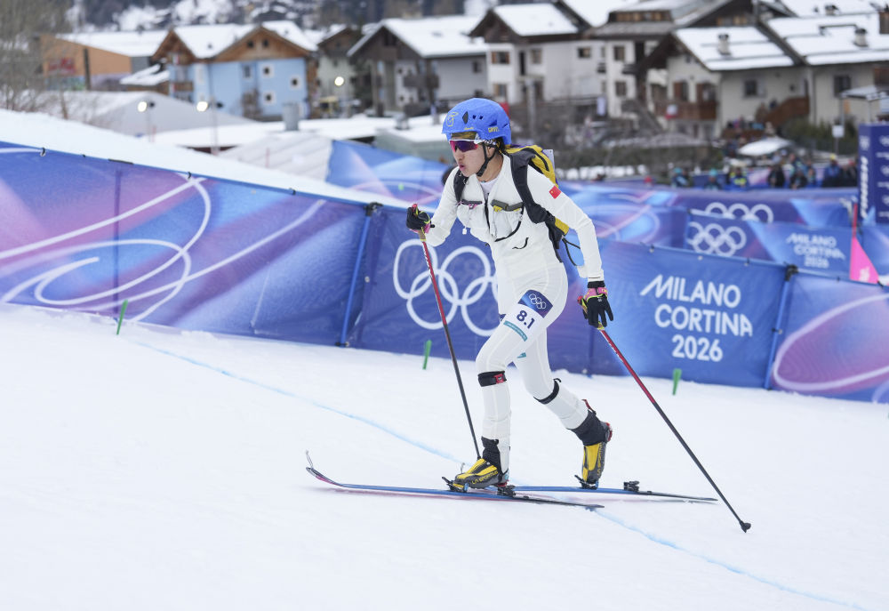 2026年2月21日,次旦玉珍在米蘭-科爾蒂納冬奧會滑雪登山混合接力的比賽中。新華社記者 顏麟蘊 攝