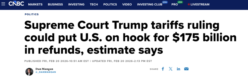 更值得注意的是,從近兩天動作看,白宮的核心優(yōu)先級并不是“盡快把錢退回去”,而是“盡快把關(guān)稅工具續(xù)上”。白宮一方面通過行政令,終止依據(jù)IEEPA加征的額外從價(jià)稅,另一方面又迅速依《1974年貿(mào)易法》第一百二十二條祭出為期150天的臨時(shí)全球15%關(guān)稅,同時(shí)加大利用301條甚至232條等傳統(tǒng)工具,繼續(xù)搭建新的關(guān)稅墻。這套動作釋放的信號十分明確:關(guān)稅杠桿要繼續(xù)用,至于已經(jīng)收來的稅款怎么退、退多少,姑且交給訴訟和程序去磨。換句話說,即便法院逼著政府退錢,白宮也在試圖通過新一輪、基于其他法律授權(quán)的關(guān)稅,把現(xiàn)金流盡可能補(bǔ)回來。