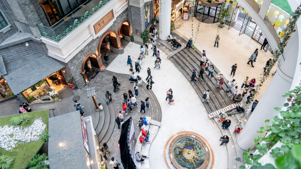 立體的空間設(shè)計(jì),打破了部分游客對(duì)商業(yè)綜合體的刻板印象?!昂颓宦傻纳虉?chǎng)不同,在‘這有山’邊爬山邊逛街的體驗(yàn)很新穎?!鄙蜿?yáng)游客趙婕說(shuō)。