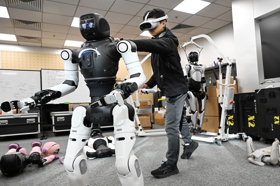 圖為由上海交通大學(xué)、上海人工智能研究院孵化的具身智能創(chuàng)業(yè)企業(yè),在豫園燈會中心廣場精心打造了一個未來感十足的智能互動區(qū)。文匯報記者袁婧攝
