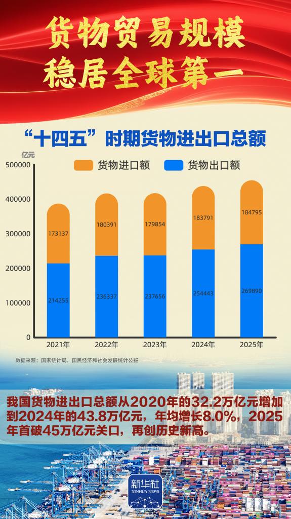 “十四五”勝利收官,“十五五”嶄新開局。我國經(jīng)濟(jì)總量完成“四連跳”,躍上140萬億元大關(guān),經(jīng)濟(jì)實(shí)力、科技實(shí)力、綜合國力躍上新臺階,中國式現(xiàn)代化邁出新的堅(jiān)實(shí)步伐,第二個(gè)百年奮斗目標(biāo)新征程實(shí)現(xiàn)良好開局。2026年全國兩會召開,舉世矚目。我們梳理出九組數(shù)據(jù),一起感受勝利收官的壯闊歷程、啟新開局的高光時(shí)刻。