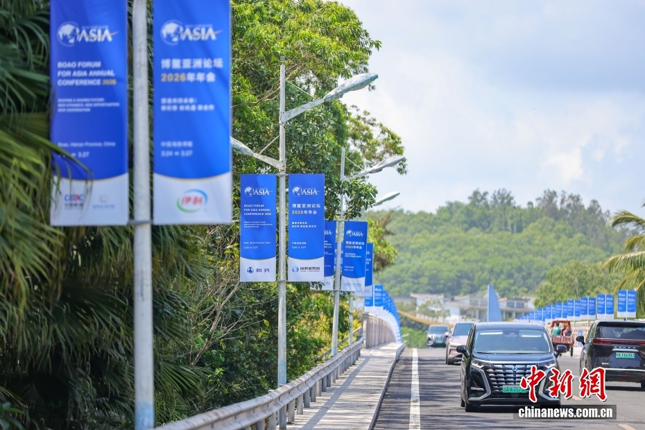 3月17日,博鰲亞洲論壇2026年年會各項籌備工作正有序推進,海南博鰲街頭的盛會氛圍日漸濃厚。以“塑造共同未來:新形勢、新機遇、新合作”為主題的博鰲亞洲論壇2026年年會將于3月24日至27日在海南博鰲召開。圖為博鰲培蘭橋道路兩側,博鰲亞洲論壇2026年年會道旗整齊排列。中新社記者 駱云飛 攝