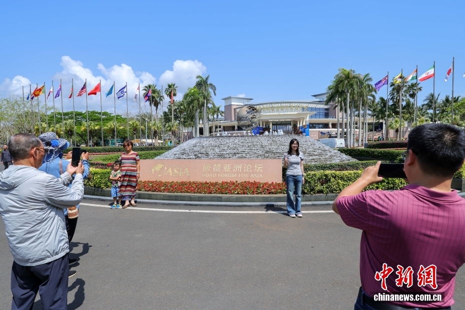 3月17日,博鰲亞洲論壇2026年年會各項籌備工作正有序推進,海南博鰲街頭的盛會氛圍日漸濃厚。以“塑造共同未來:新形勢、新機遇、新合作”為主題的博鰲亞洲論壇2026年年會將于3月24日至27日在海南博鰲召開。圖為游客在博鰲亞洲論壇永久會址前打卡拍照。中新社記者 駱云飛 攝