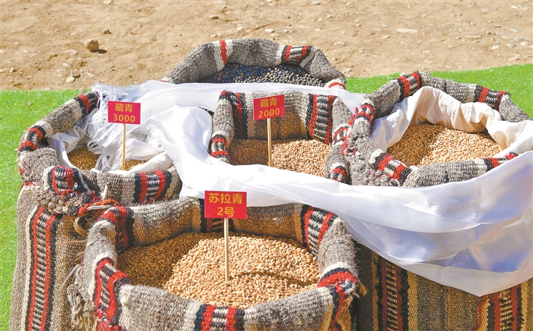 圖為墨竹工卡縣唐加鄉(xiāng)春耕春播儀式上展示的各類(lèi)青稞種子。記者 索朗旺久 攝