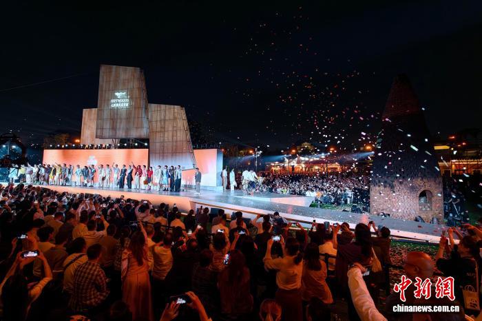 4月18日晚,福建泉州石獅打破傳統(tǒng)秀場(chǎng)的封閉空間,以承載千年海絲記憶的萬(wàn)壽塔為天然幕布,打造場(chǎng)景化、開(kāi)放式、沉浸式的戶外時(shí)尚盛宴。(石獅市融媒體中心供圖)