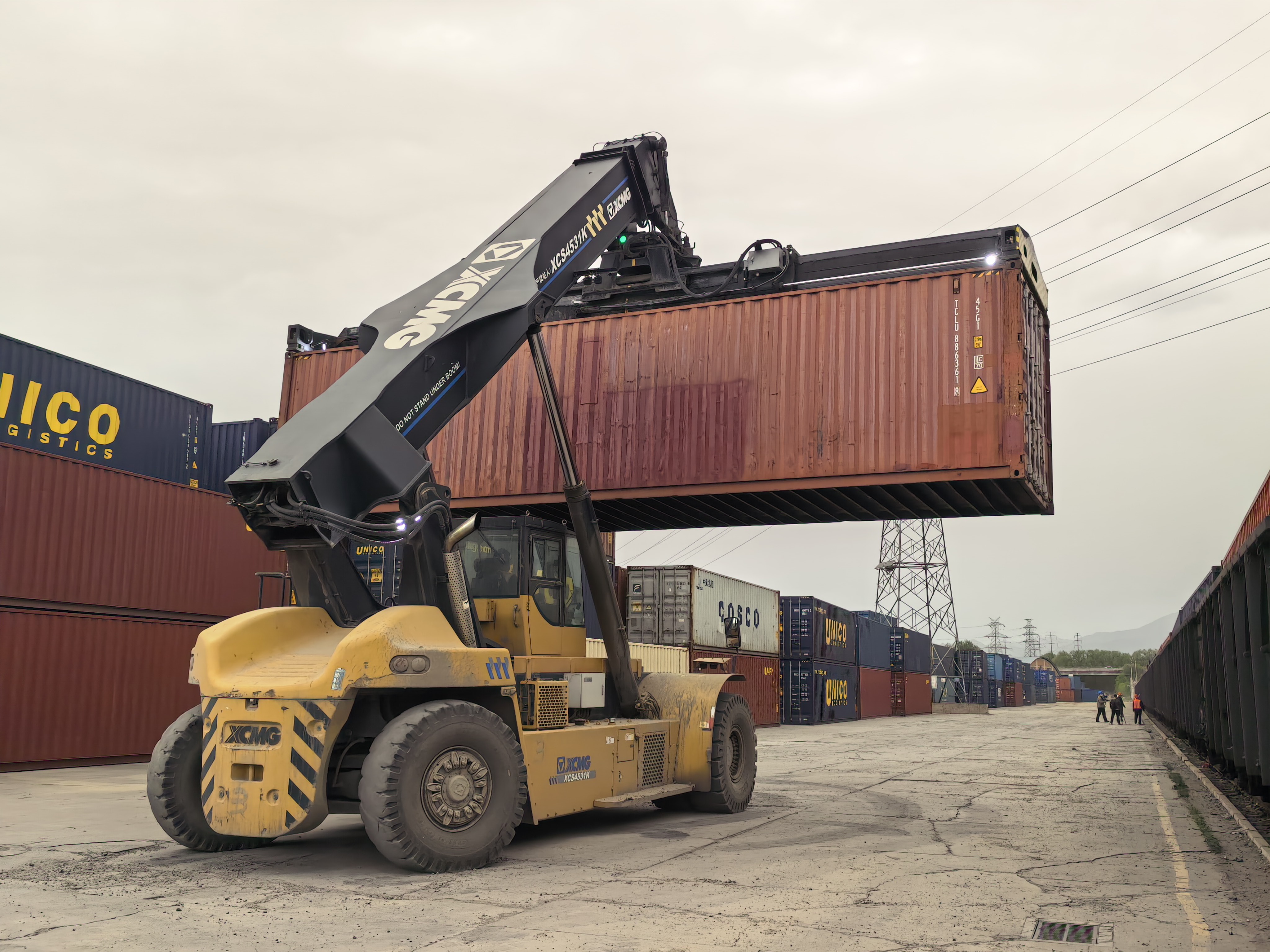 北京至中亞圖定班列正在裝載貨物。北京國際陸港供圖