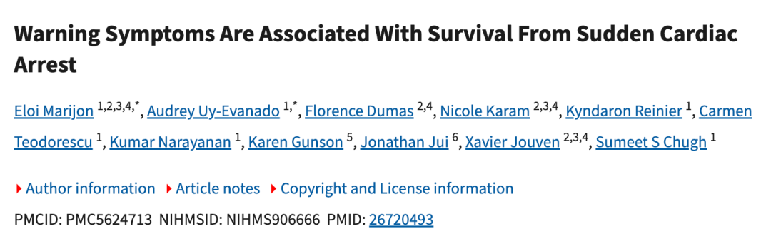 2016《內科學年鑒》刊發(fā)的一篇文章,首次大規(guī)模證實心臟驟停前存在可識別的預警癥狀,打破了“猝死毫無征兆”的傳統(tǒng)認知。研究納入的839名心臟驟?;颊咧?,430名有先兆癥狀,占51%,主要為:胸痛、呼吸困難、頭暈。①