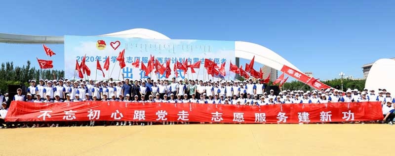 7月29日,2020年內(nèi)蒙古大學(xué)生志愿服務(wù)西部計劃志愿者出征儀式在呼和浩特舉行,來自區(qū)內(nèi)外高校的部分西部計劃志愿者代表和旗縣項目辦負(fù)責(zé)人參加。