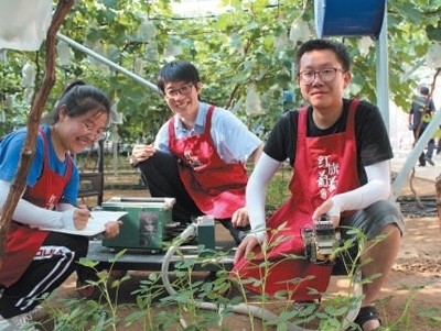人才培養(yǎng)在遼寧省營口市鲅魚圈區(qū)葡萄科技小院,沈陽農(nóng)業(yè)大學師生在田間進行指標測定。邢若男攝(人民視覺)