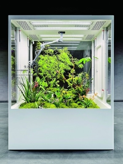 展廳一側,三個立方體環(huán)境模擬艙并排放置,分別在近7立方米的空間內模擬了雨林、海島、沙漠三種生態(tài)環(huán)境,引來許多觀眾圍觀?!霸诟邩橇至⒌亩际校芏嗳硕枷蛲鶕碛幸环綄儆谧约旱淖匀惶斓?。為人們在室內打造一片‘原始森林’便成了我們的使命。”品牌創(chuàng)始人李軍介紹,設計過程中,團隊遇到的一大的難點就是在保證室內環(huán)境舒適度的同時,讓各類植物健康生長。“通過設計師的努力,我們首次將人造太陽光源、溫濕度控制、空氣流通、智能微噴等系統(tǒng)整合于室內種植模擬環(huán)境中,實現了室內種植智能化、自動化、現代化。”李軍表示,做設計亦要遵循自然法則,“人與自然和諧共生”是團隊始終不變的設計宗旨。