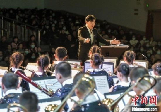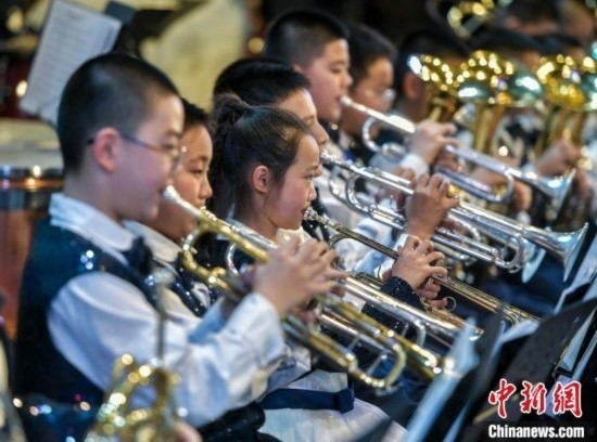 12月27日,新疆烏魯木齊市沙依巴克區(qū)教育系統(tǒng)“龍行龘龘 樂動童年”2024年交響管樂新年音樂會在該市青少年宮舉辦,來自烏魯木齊市第27小學(xué)的交響管樂團演奏了《紅旗頌》、《茉莉花》等經(jīng)典曲目,并與絲路名師合唱團合作演出《青春之舞》、《最炫民族風》等曲目。據(jù)介紹,該交響管樂團成立于2014年,規(guī)模從最初的40余人發(fā)展到現(xiàn)今近70人,團員平均年齡10歲。