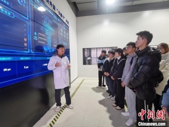 量子計(jì)算專家向高校學(xué)生介紹量子計(jì)算芯片。張俊 攝