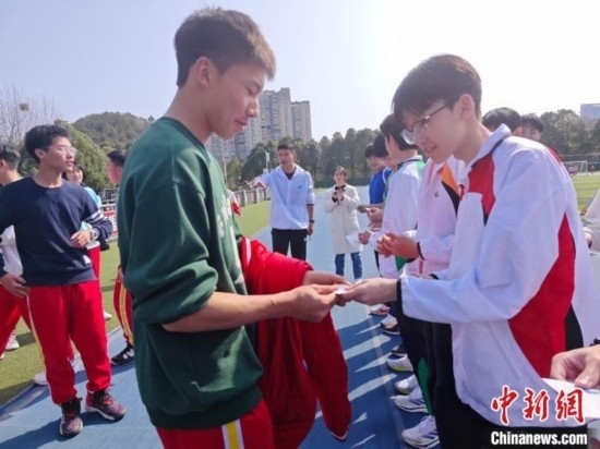 3月19日,部分兩地學(xué)生在貴陽市第一中學(xué)合影留念。唐哲 攝