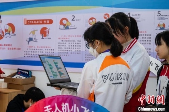 3月19日,兩地學(xué)生一起學(xué)習(xí)無人機巡線任務(wù)編程。唐哲 攝