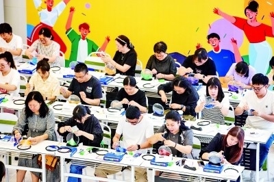 ——拿出彩色的扭扭棒,將其折成花瓣的形狀……在手工課堂上,學(xué)員們將扭扭棒巧妙地扭轉(zhuǎn)編織成獨(dú)特的造型。