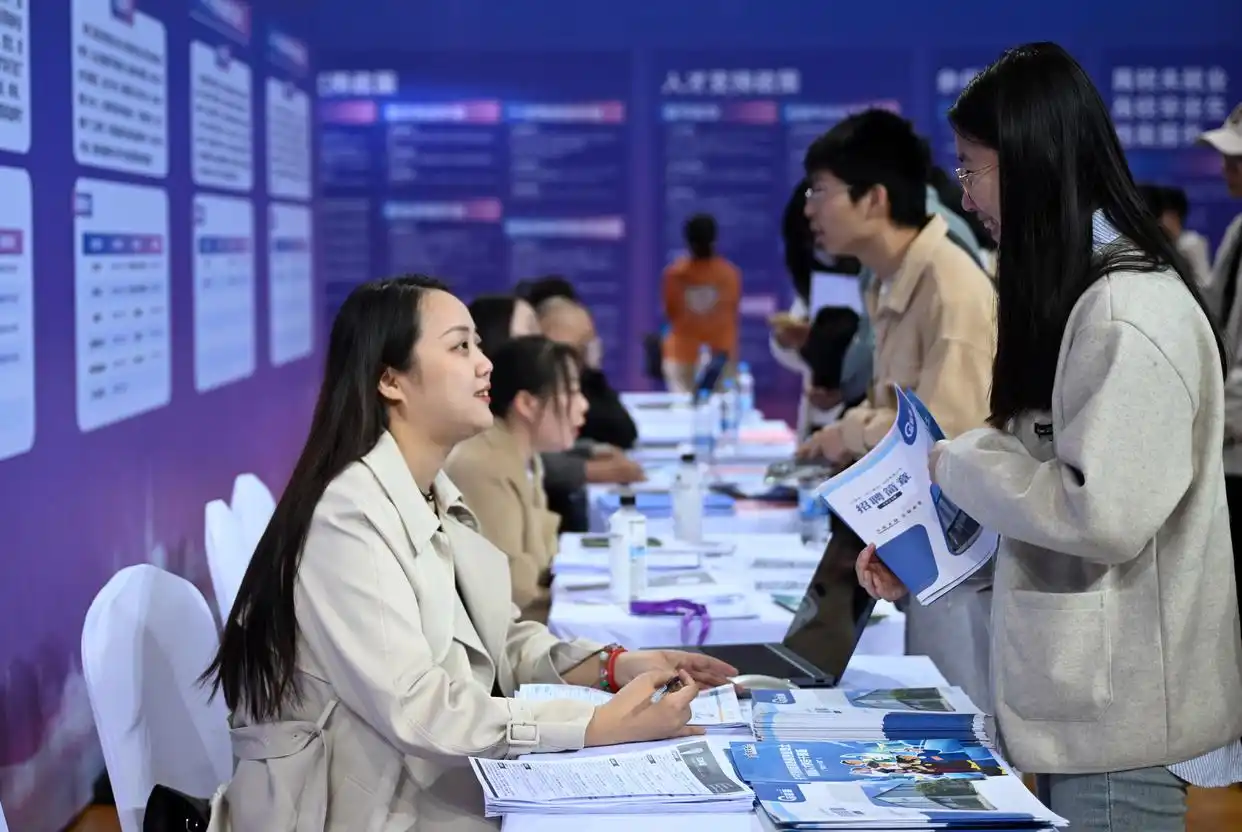 3月20日,環(huán)渤海城市聯(lián)合招聘高校畢業(yè)生春季專場活動在天津職業(yè)技術(shù)師范大學啟動,來自環(huán)渤海地區(qū)400多家企業(yè)提供崗位1.1萬個?;顒蝇F(xiàn)場還設立就業(yè)服務臺,為學生提供指導。圖為當日,求職學生(右)和招聘方代表在招聘會現(xiàn)場交談。新華社記者 趙子碩攝