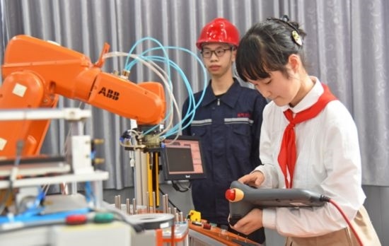 學(xué)生參加機(jī)器人課程