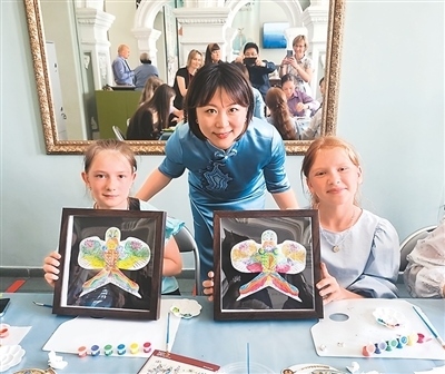 不久后的9月,“東方雅韻——中國(guó)文化藝術(shù)展”2.0版本及“天涯共此時(shí)”中秋文化體驗(yàn)活動(dòng)在西班牙馬德里中國(guó)文化中心舉辦。天津博物館首次將體驗(yàn)工坊帶進(jìn)馬德里社區(qū),當(dāng)?shù)貎和跉g聲笑語(yǔ)中沉浸式感受中華傳統(tǒng)技藝,一位當(dāng)?shù)嘏W⒌赜猛赜」ぞ邚?fù)刻楊柳青木版年畫,她指尖起落間,寓意吉祥的“連年有余”圖案逐漸清晰。工坊結(jié)束后,大家拿著自己拓印的團(tuán)扇、親手捏制的中秋兔子與老師合影,還放飛了自己動(dòng)手著色的迷你風(fēng)箏。