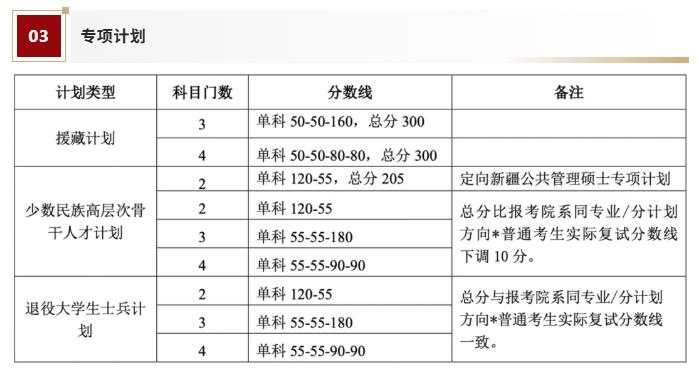 注*:按研究方向分計(jì)劃招生的,總分要求以考生報(bào)考的研究方向普通考生實(shí)際復(fù)試分?jǐn)?shù)線(xiàn)為參照基準(zhǔn)。