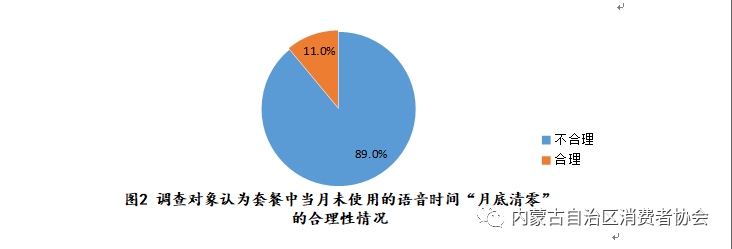 1.運營商提供的現(xiàn)有套餐及資費政策不合理。30.3%的調(diào)查對象認(rèn)為套餐有額外增值業(yè)務(wù)產(chǎn)生,28.3%的調(diào)查對象認(rèn)為套餐整體資費超出所需范圍,89%的調(diào)查對象表示套餐中當(dāng)月未使用的語音時間“月底清零”不合理,所有調(diào)查對象均表示三大通訊運營商沒有提供無固定月租收費標(biāo)準(zhǔn)。