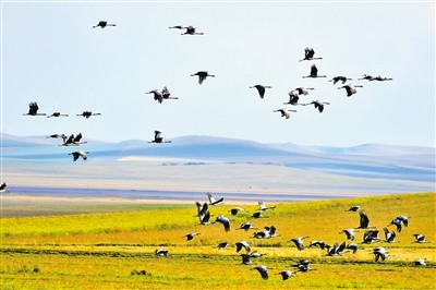 在這優(yōu)美畫卷中,蓑羽鶴就是額侖草原上的精靈,給草原平添了生命的活力。蓑羽鶴是鶴類中個體最小者,對生態(tài)環(huán)境質量要求很高。從之前的形單影只,到現(xiàn)在的成群結隊,蓑羽鶴對額侖草原的青睞,足以說明了額侖草原生態(tài)環(huán)境的保護成效。