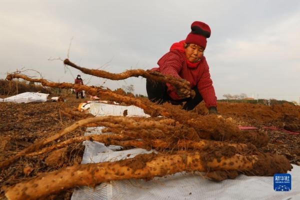 時(shí)下,河南省焦作市溫縣種植的鐵棍山藥進(jìn)入收獲季,當(dāng)?shù)剞r(nóng)民忙著采收、加工、銷(xiāo)售。