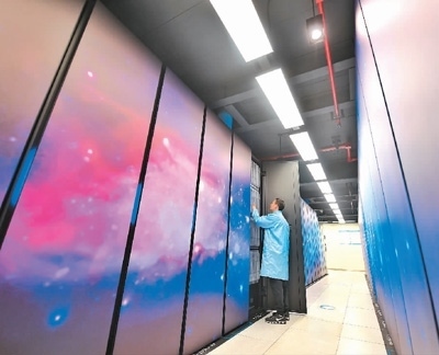 2023年2月14日,四川省成都市,國家超級(jí)計(jì)算成都中心的科研人員在巡檢機(jī)房設(shè)備。新華社記者 劉 坤攝