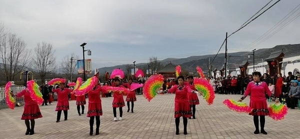 康樂縣魏家寨村文化廣場(chǎng)上,村民自發(fā)排練扇子舞。(受訪者供圖)