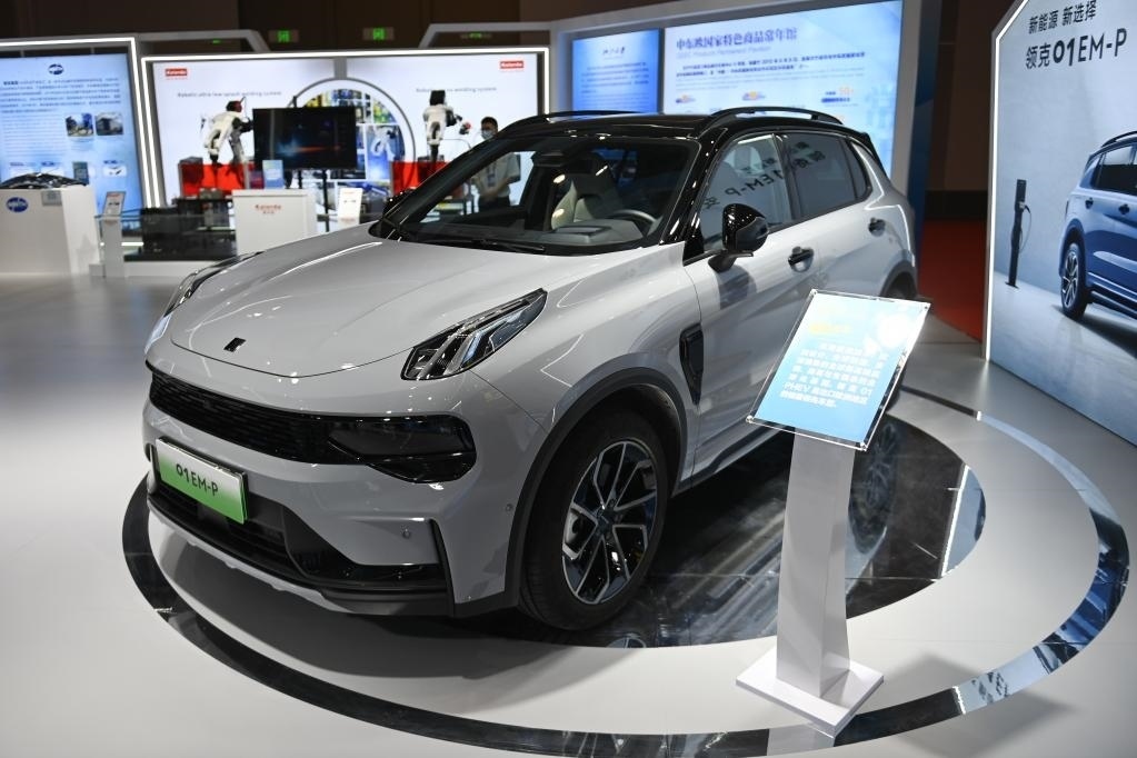 5月16日在寧波舉行的第三屆中國(guó)—中東歐國(guó)家博覽會(huì)中東歐展館浙江展區(qū)拍攝的一款出口歐洲的領(lǐng)克汽車。新華社記者黃宗治攝