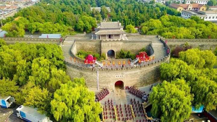孔廟萬仞宮墻(無人機照片)。新華社記者 郭緒雷 攝