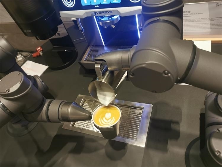 磨粉、過濾、注水、沖泡、拉花……短短75秒,智能咖啡大師就憑借著兩只靈活又穩(wěn)重的機械臂,制作出一杯帶拉花圖案的香濃咖啡。“我們的機械臂拉花都是由咖啡大師調教的,很精準,如果說有時候人可能存在失誤的情況,那么機器人不會?!卞鄄┥綎|智能機器人有限公司調試工程師崔玉坤告訴記者,這臺機器目前可以做出4個品類6個花型的拉花效果,后期可以支持在線升級和擴充。