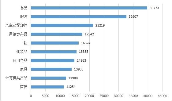 圖4商品細分領(lǐng)域投訴前十位(單位:件)