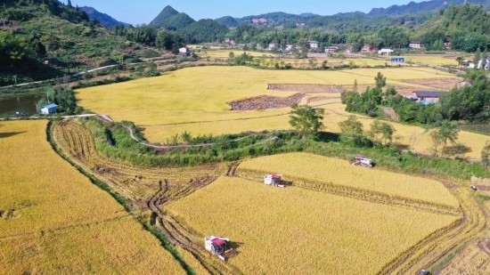 秋收時(shí)節(jié),稻田稻浪翻滾,作為“巴渝糧倉”的重慶梁平區(qū)又迎來了豐收景象。