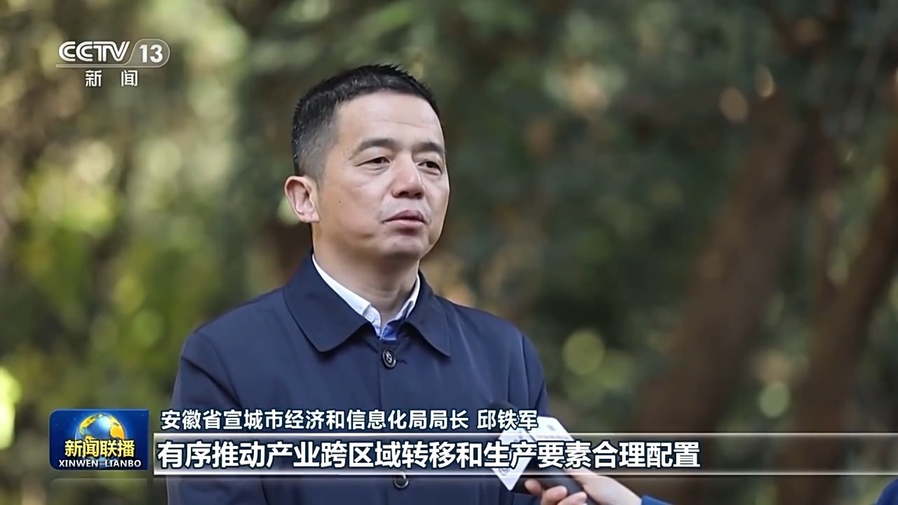 安徽省宣城市經(jīng)濟和信息化局局長 邱鐵軍:習(xí)總書記強調(diào),有序推動產(chǎn)業(yè)跨區(qū)域轉(zhuǎn)移和生產(chǎn)要素合理配置。我們發(fā)揮區(qū)位優(yōu)勢,主動靠上去、精準(zhǔn)接上去、全力融進(jìn)去,深度參與長三角產(chǎn)業(yè)鏈供應(yīng)鏈分工合作。