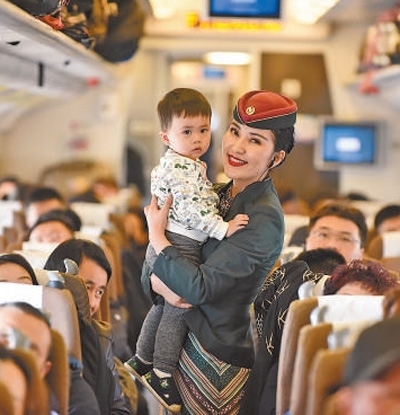 在蘭新高鐵D8803次列車上,乘務(wù)員與旅客互動。擺風亮攝(影像中國)