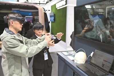 在2024年世界互聯(lián)網大會“互聯(lián)網之光”博覽會上,參觀者體驗一款全息智能醫(yī)學影像系統(tǒng)做手術的過程。新華社記者 蔡湘鑫攝