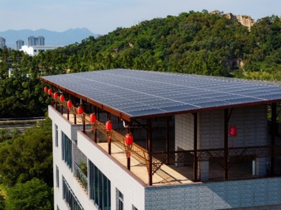 “陽明樓”是興中村通過租賃形式引入的屋頂光伏產(chǎn)品,農(nóng)戶通過出租閑置屋頂給光伏電站項(xiàng)目獲得租金收益,目前該村已有十余戶安裝。為最大化發(fā)電效率,產(chǎn)品采用5°人字坡設(shè)計(jì),確保光伏板全年可接收足夠光照,實(shí)現(xiàn)收益最大化。按屋頂安裝105塊光伏組件計(jì)算,農(nóng)戶在合作期間累計(jì)可獲得屋頂綜合收益近8萬元。產(chǎn)品不僅隔熱防雨,其設(shè)計(jì)結(jié)合中式建筑風(fēng)格,也成為“綠化”鄉(xiāng)村的一道風(fēng)景。