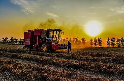 一輛輛花生收獲機駛過