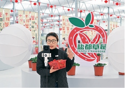 3月28日9點,新民村的一座草莓大棚中,一場直播帶貨開始了。