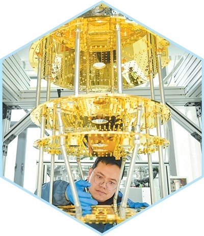 安徽合肥一家科技公司的技術(shù)人員在安裝稀釋制冷機的換熱組件。