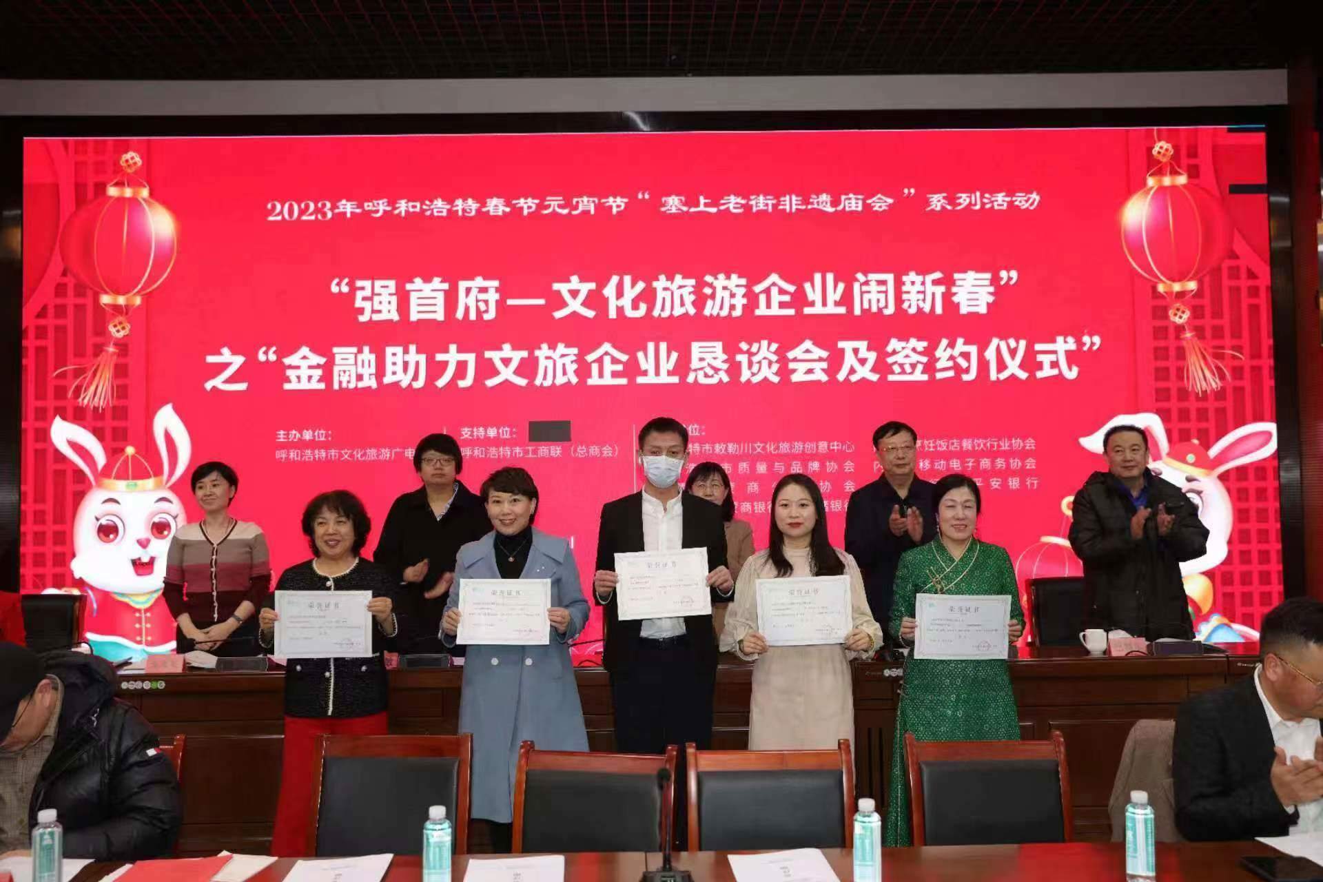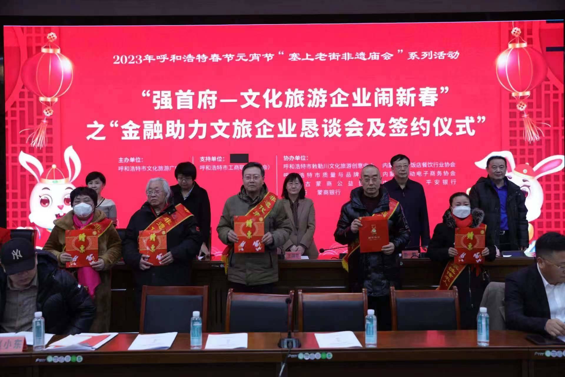 2月4日,呼和浩特市文化旅游廣電局與呼市工商聯(lián)(總商會(huì))舉辦“強(qiáng)首府—文化旅游企業(yè)鬧新春”之“金融助力文旅企業(yè)懇談會(huì)及簽約儀式”,共同為首府提振市場(chǎng)信心、促進(jìn)文化旅游產(chǎn)業(yè)高質(zhì)量發(fā)展、促進(jìn)首府“六大產(chǎn)業(yè)集群”作出貢獻(xiàn)?! ?/p>
