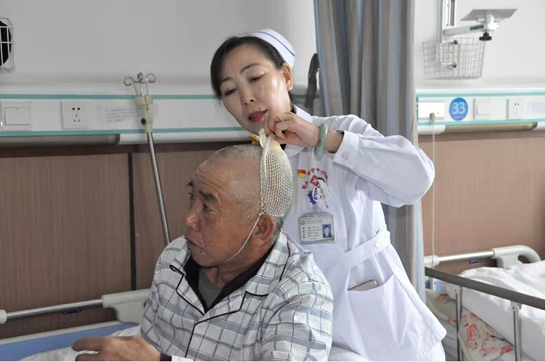2015年4月,從外地來鄂爾多斯打工的張某因外傷至腦出血,在外科二區(qū)昏迷了近十天后逐漸清醒,可是由于腦出血后遺癥,患者右側肢體癱瘓、失語、大小便失禁,幫忙看護的工友沒人出錢,都偷偷溜走了。張某的父母過世,家里的兄弟姐妹經濟困難,加上他是單身,40多歲的他被遺棄在醫(yī)院沒人照顧。危難之際,她主動擔負起了照顧張某的任務,自己花錢給他買飯,還給他買紙尿褲。