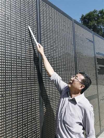 楊智美在英烈墻上找到了二叔的名字