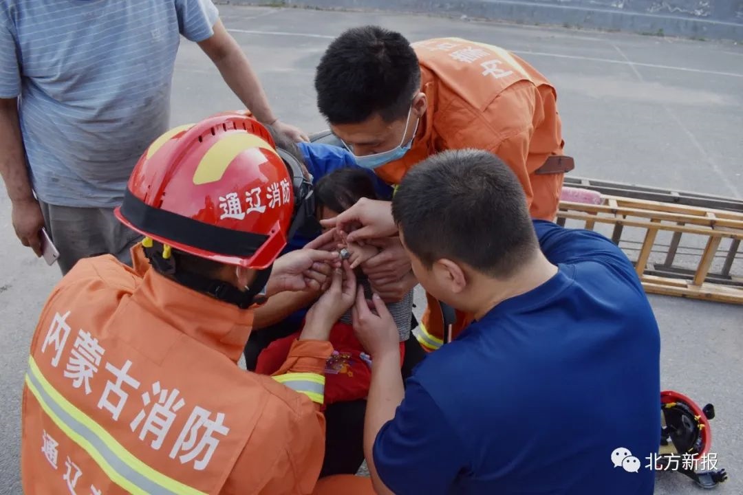 7月2日,霍林郭勒市消防救援大隊指戰(zhàn)員們正在進(jìn)行日常訓(xùn)練時,一輛出租車緊急停在了大隊門前,一對夫婦抱著啼哭不止的4歲女童從車上下來,焦急地尋求消防員的幫助,原來4歲女童的手指被螺母卡住無法取下,孩子父母才趕來消防隊求助。