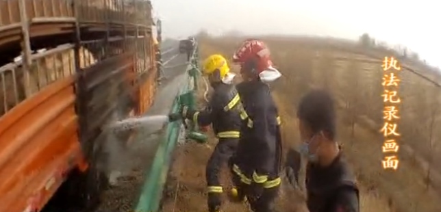 高速上貨車輪胎起火 一車生豬差點(diǎn)變烤豬