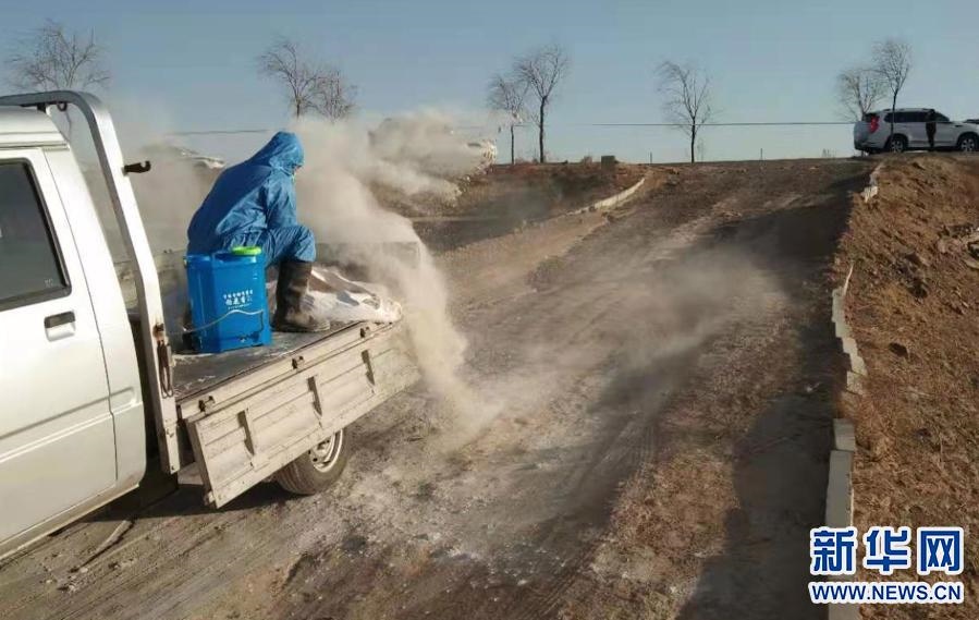 3月21日,達(dá)拉特旗疫控人員對(duì)黃河國(guó)堤內(nèi)死豬丟棄區(qū)域進(jìn)行消毒。新華社發(fā)